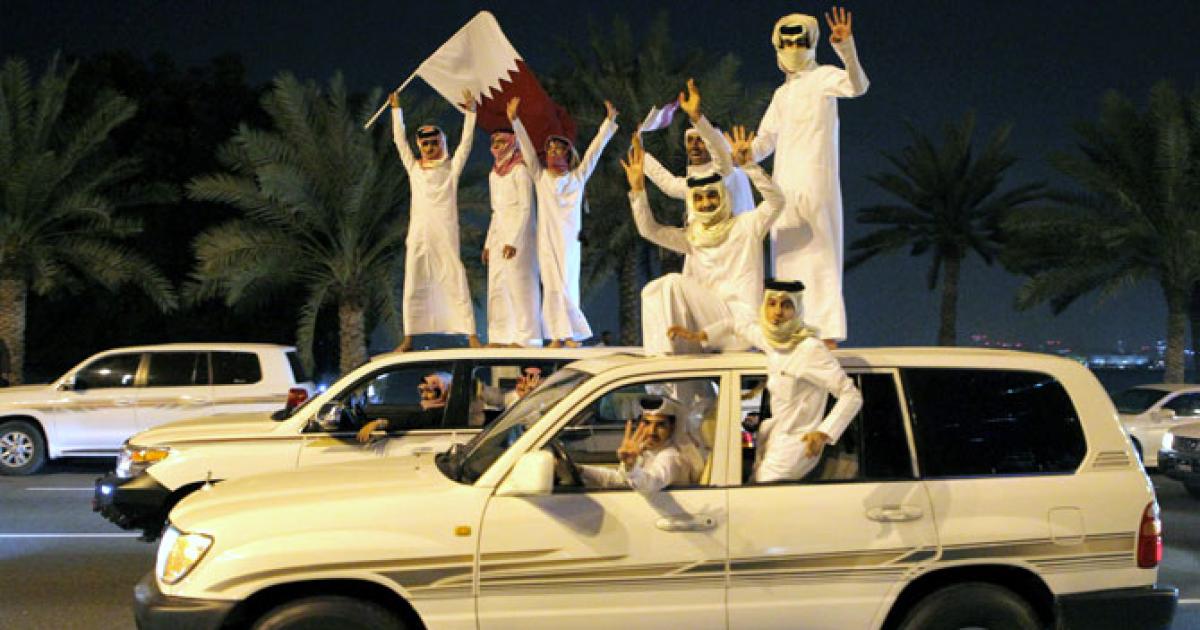 Flag-waving Qataris celebrated around the country after their soccer team thrashed hosts United Arab Emirates 4-0 in a politically charged match to reach the Asian Cup final on Tuesday.