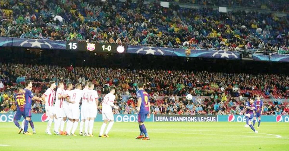 Messi struck his landmark goal in Europe from a free-kick in the 61st minute to double Barca's lead. It was his 97th goal in the Champions League. His other three came in the UEFA Super Cup.