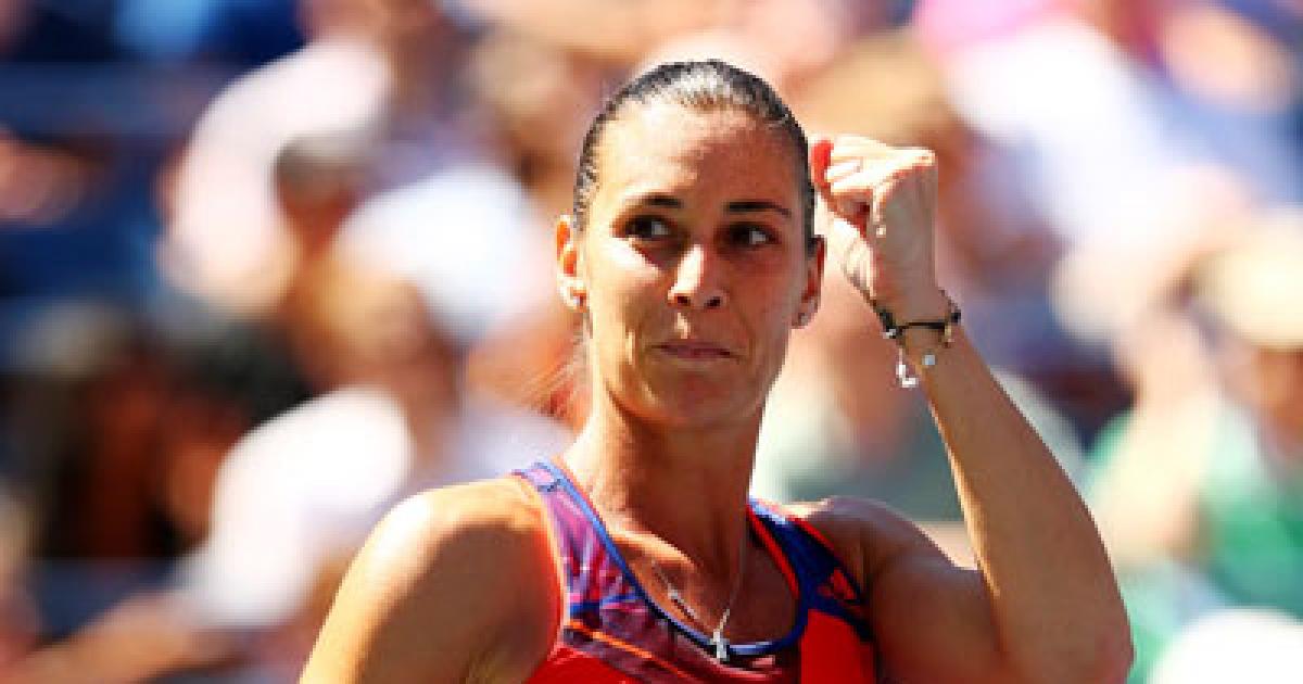 Image: Flavia Pennetta of Italy celebrates match point during her women's singles quarter-final match against Roberta Vinci of Italy on Day Ten of the 2013 US Open at the Flushing Meadows