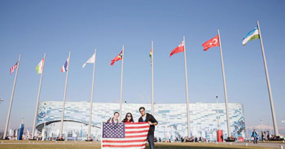 A general view of Americans holding a flag in the Olymnpic Park in Sochi"U.S. travelers should be aware of cybersecurity threats and understand that they have no expectation of privacy when sharing sensitive or personal information utilizing Russian electronic communication networks," the department said.