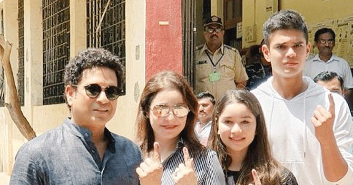 "Voting this year has been so much more special with Sara and Arjun voting for the first time. I urge you all to go out and VOTE too," Tendulkar wrote on his Twitter handle alongside the above photograph.
