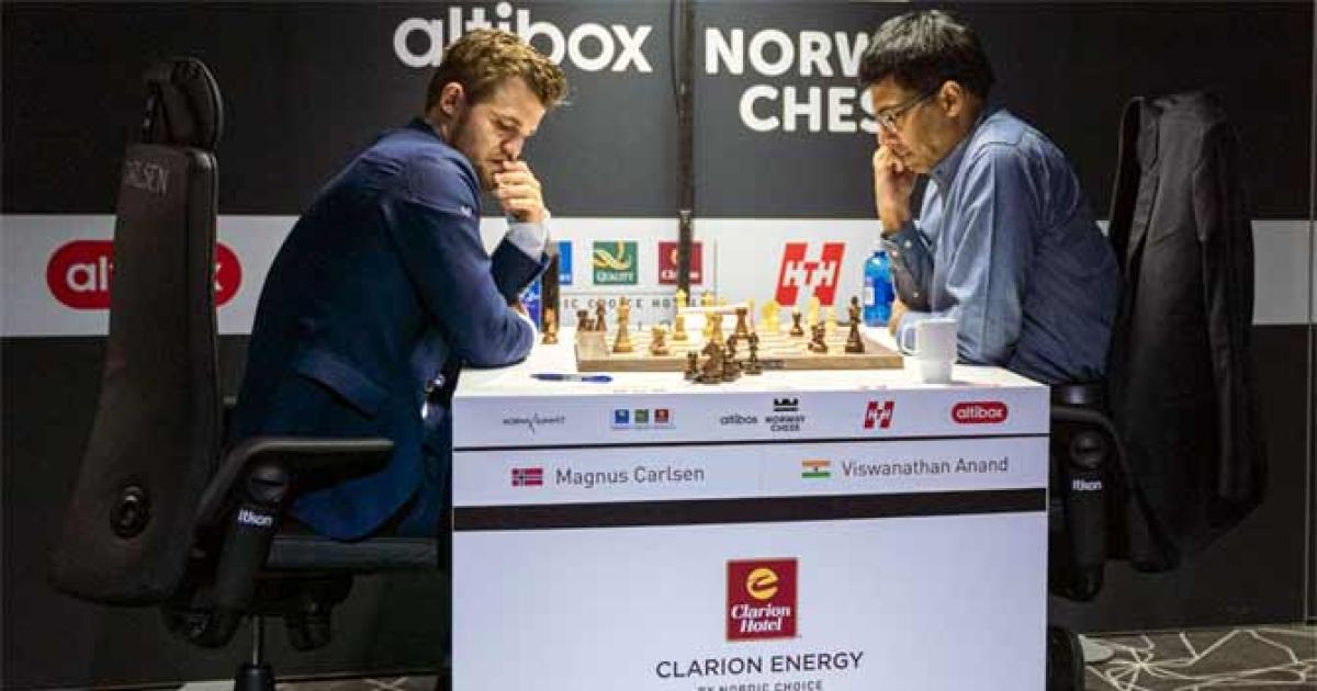 Viswanthan Anand was beaten by World champion Magnus Carlsen and Shakhriyar Mamedyarov in the first two rounds of the Altibox Norway Chess tournament.