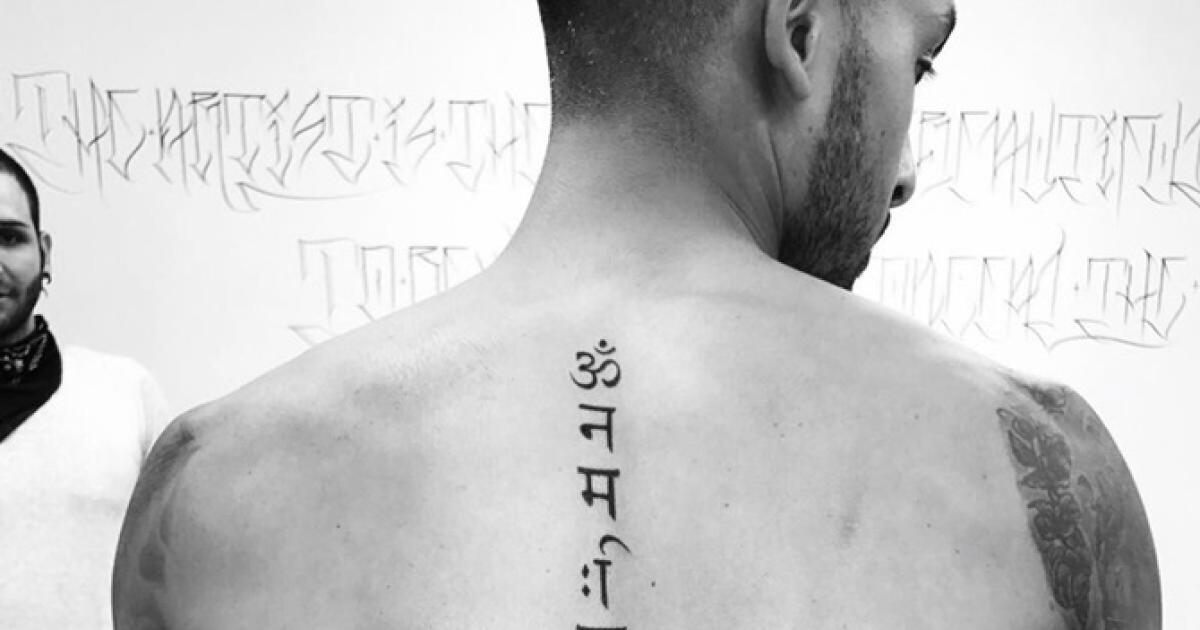 The forward dedicated this tattoo to Hindu deity Lord Shiva which reads “Om Namah Shivaya”.