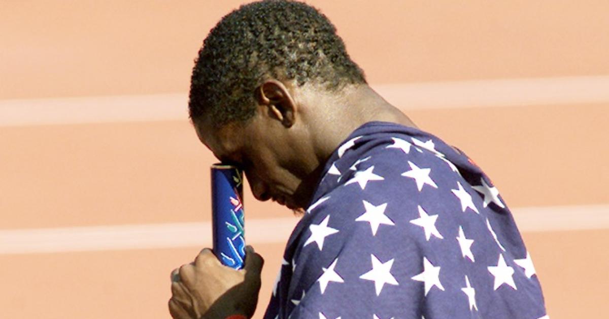 IMAGE: USA’s Dennis Mitchell walks off the track. Photograph: Reuters