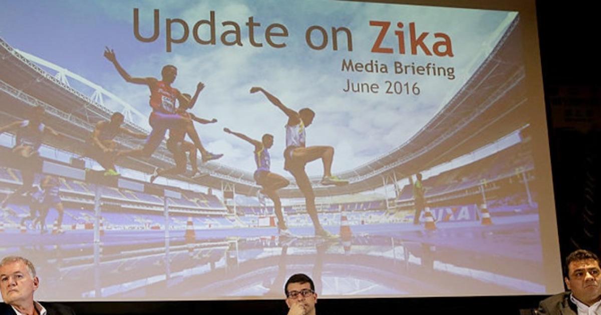 IMAGE: Rio 2016 Chief Medical Officer Joao Grangeiro, Municipal Secretary of Health Daniel Soranz and Sub-secretary of the State for Health and Surveillence Alexandre Chieppe field questions from the media during an International Media Briefing to address the Zika virus. Photograph: Matthew Stockman/Getty Images.