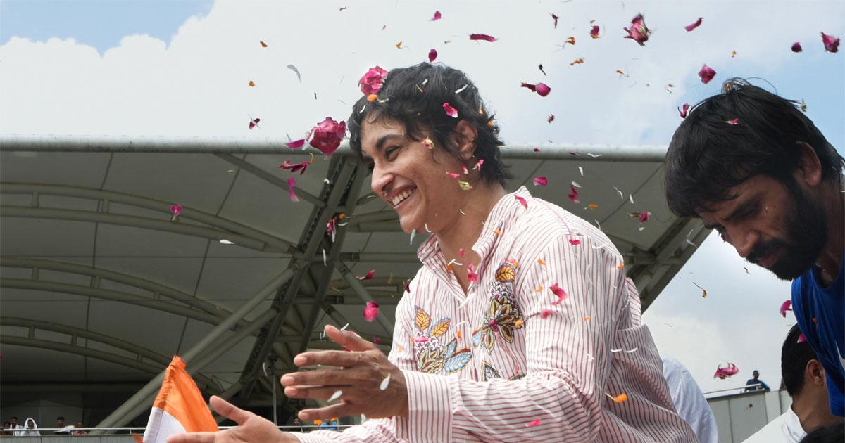 Vinesh arrived at Delhi's Indira Gandhi National Airport on Saturday to a rousing reception.