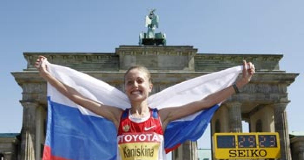 Kaniskina's win means Russian women have won the last five 20km walk golds at the world championships.