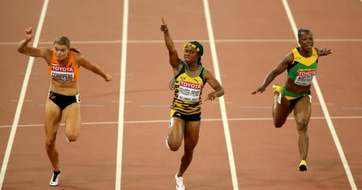 Trinidad and Tobago team mates Michelle-Lee Ahye (10.98) and Kelly-Ann Baptiste (11.01) finished fifth and sixth with the third Jamaican Natasha Morrison and Nigeria's Blessing Okagbare (both 11.02) seventh and eighth respectively.