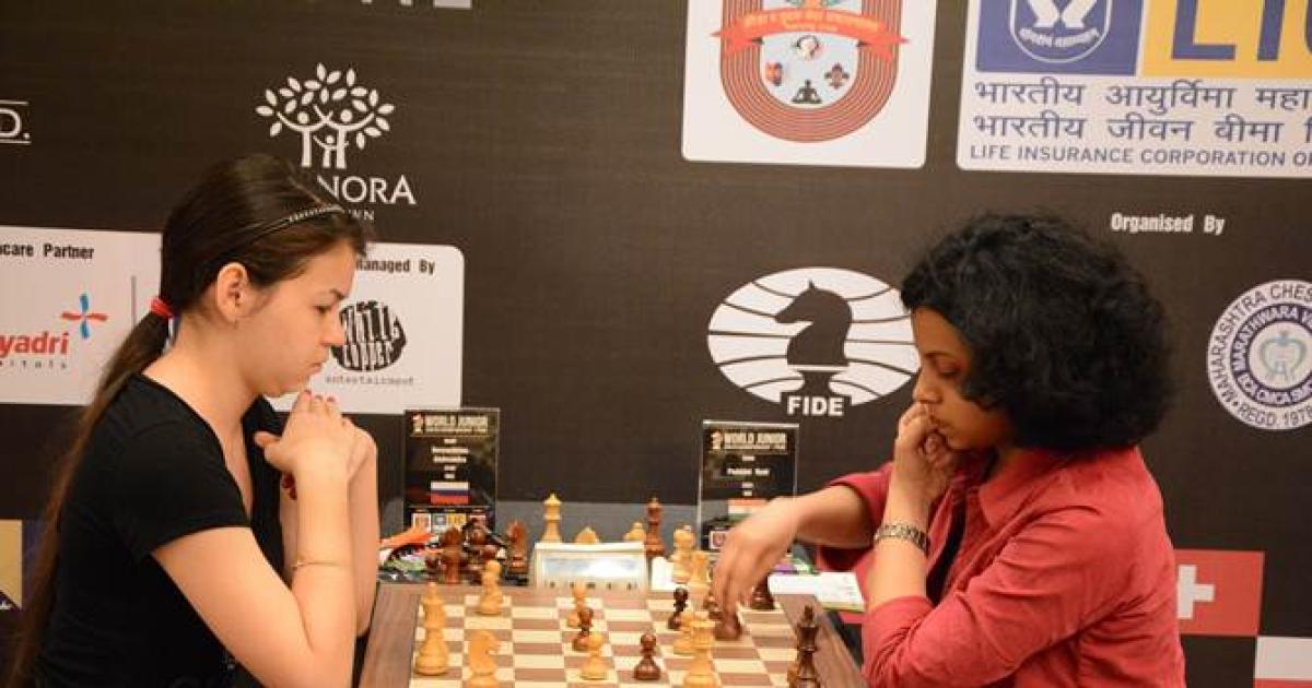 Russia’s Goryachkina Aleksandra (left) and India's Padmini Rout during their eighth round match in the World Junior Chess Championships