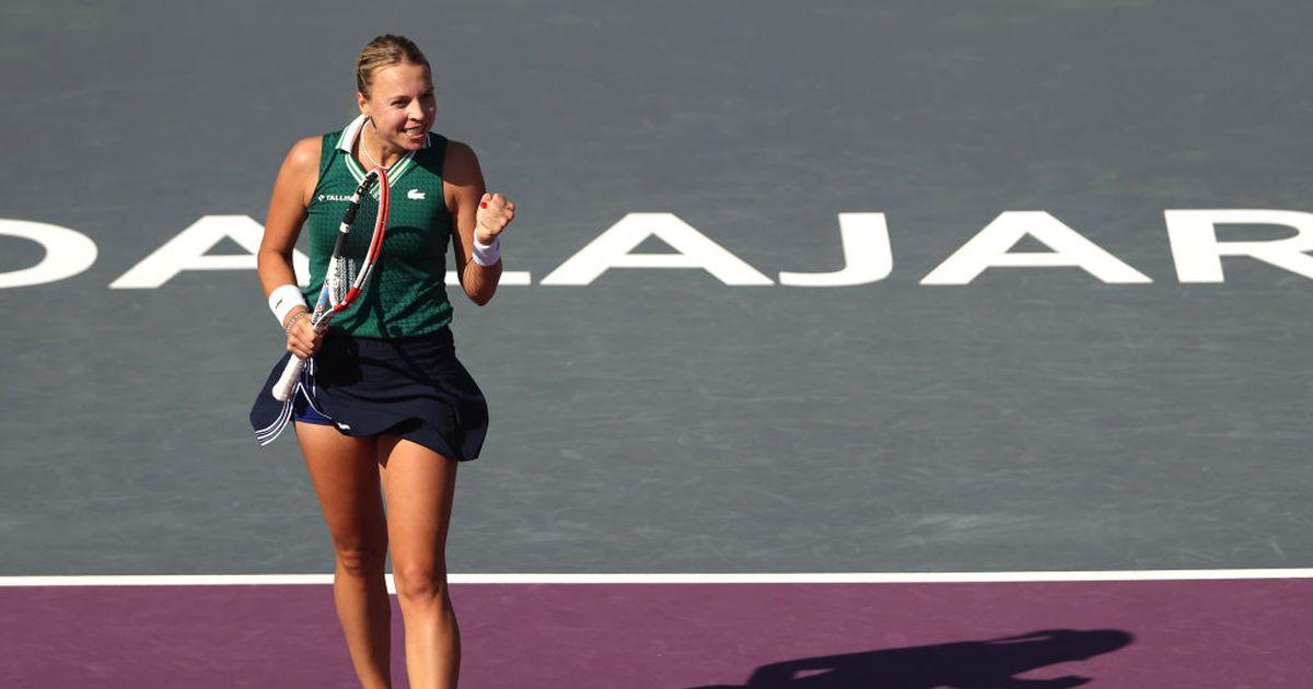 Anett Kontaveit handed Czech Karolina Pliskova a 6-4, 6-0 drubbing to become the first player to qualify for the semi-finals while Garbine Muguruza came from behind to defeat Barbora Krejcikova 2-6, 6-3, 6-4 at the WTA Finals in Guadalajara, Mexico on Friday.
