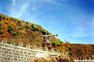 "Because Jyotiba was formed by the amalgamation of the jyotis (souls) of three gods, Brahma, Vishnu and Shiva who took the form of Jyotiba to destroy the evil Ratnasur. By the way Jyotiba is also referred to as Dattatreya." I start digging around for details about the temple. "When was the temple built?" "We do not know. It is centuries old," say all the priests in unison. " It must have been shortly after Ratnasur was killed," says an elderly priest or bhadji very seriously. Not much help that. But when was the temple renovated? Again there are no answers. "That we do not know." From Jyoitba I move on towards Panhala, 20 kms away from Kolhapur and a visit to the fort is meant to be the highlight of my trip.