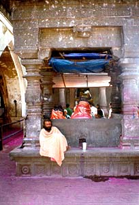 I move towards the temple complex. A cannon and a statue of Nandi (Shiva's mount) are located inside the temple complex. A strange sadhu sits just inside. His calm, very-much-at peace manner catches me unawares. He wishes me good health. But he refuses to accept any money. I try to talk to the sadhu. But he looks at me blankly.