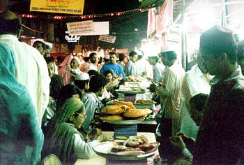 A visit to the mohallas during Ramzaan is a must for everyone who loves food. So join me on this journey to the interesting Ramzaan haunts in the mohallas of South Bombay. What is so special about eating in these mohallas? Where are these localities? What does mohalla mean? Once you arrive close to J J Hospital or Mohammed Ali road, in south Bombay, just beyond the celebrated Victoria Terminus, get ready to discover the famous mohallas. Amongst the more famous and frequented mohallas are Nagdevi street, near Crawford Market, Minara Masjid and Bori Mohalla. Each place prepares the same delicacies. But one mohalla or the other has gained a reputation for a particular dish. The thumb rule -- like your Hindi celluloids – that if you’ve seen one you’ve seen them all, does not apply here. The gourmet can immediately spot the subtle variations in taste.