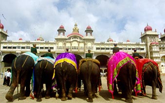 The most venerable elephant has the honour of carrying Goddess Chamundeshwari on its back. |