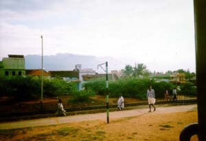 At Erode station, the engine was shunted off to the back of the train. The train took off in the other direction. Erode, by the way, was where one of Tamil Nadu's famous social reformers, 'Periyar' E V Ramaswamy Naicker was born. The peaceful countryside around Erode is some of the most fertile in the state. Sugarcane, peanuts, bananas, cotton, millets, rice, turmeric, and tobacco all flourish around here. But Erode I am told, is a humid, rail junction town with not much to lend for itself. But Sholapur in Maharashtra and Erode both are famous for their cloth. In Sholapur, you can buy bedsheets and towels. In Erode, you can buy lungis, towels and dhotis. In Sholapur, you can bargain. In Erode, you can't. The train was supposed to stop at Erode for 20 minutes. Instead, it stood for an hour. It then halted for another hour just as we reached the outskirts of Erode. The train was now running hopelessly late. We had lost all the time we had made up in the day.