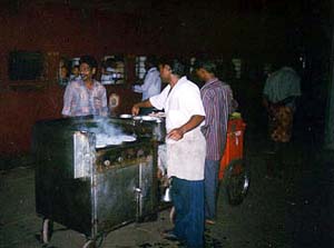 Good thing, too. Because, at 4.30 am, just as my dreams are swaying to the rhythm of the clattering train wheels, I was rudely awoken by the chorus of "Chai... coffee." The accents had changed. We were now in Andhra Pradesh. Queuing outside the toilets is such a pain. So I smoked continuously. The Andhra vendors were now selling samosas and kakdi or cucumbers. A women was selling tomatoes and kakdi. Another was selling tender coconuts. A very pretty girl was selling grapes. I bought the grapes.