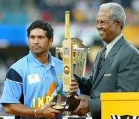 Tendulkar was presented his award by former West Indies great Garfield Sobers for amassing a record 673 runs but was dismissed for four on Sunday after Australia set India a daunting target of 360.